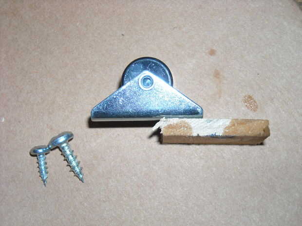 me encontré al haber instalado el primer cajón que la rueda que se debe montar en la parte inferior del cajón necesita un poco más de altura. Corté un pedacito de madera de un palo usado para revolver pintura encajaría perfectamente. Así se necesitarían algunos otros tornillos. Tenga cuidado y no elegir a algunos que son demasiado largas, como penetran la parte inferior del cajón. Utilicé tornillos largos de 12 mm.
