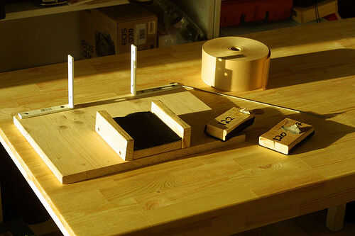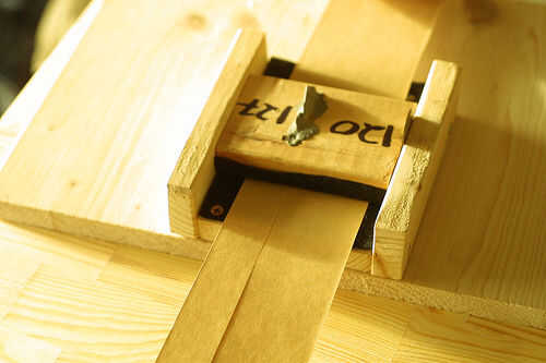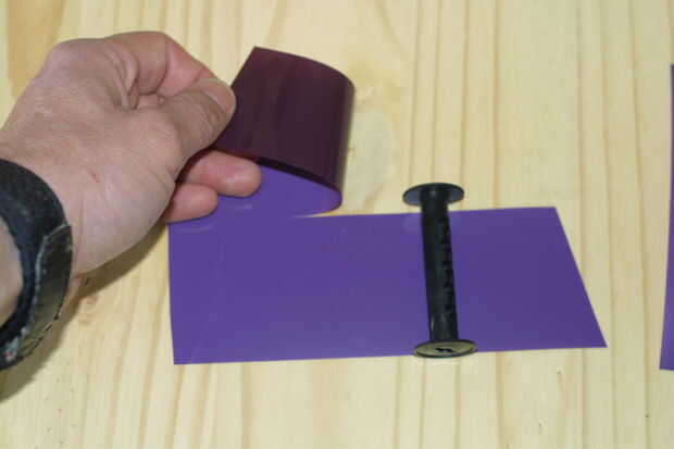 a. interrumpe. Si va a utilizar la película de 105mm en las cámaras de rollo de película, deberás cortar a su tamaño a menos que planee construir una cámara de formato de 105 mm a ti mismo. Frente a este requisito, construí a una cortadora cruda pero efectiva que consta de un canal recubierto de fieltro y una pieza que tiene una hoja para cortar la película. Lo bueno de este diseño es que puede operar el inserto para cortar varios anchos de película. Una vez que la película raja al ancho correcto, deberás encontrar ejes de rodillo y papel del forro para su película.