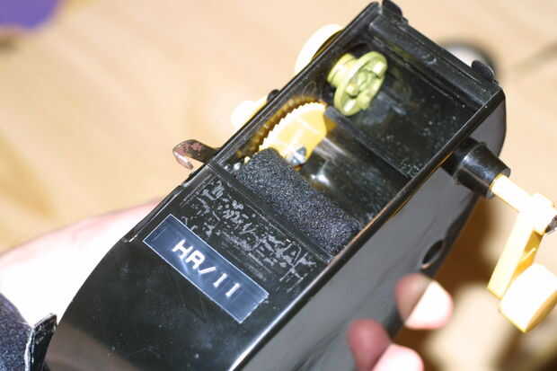 c. todos los cargadores a granel que conozco vienen con contadores que te dan una idea de cuanta película se queda en el cargador. Estos no funcionan con su microfilm sin perforar porque trabajan por realizar las perforaciones. La película se deslice sobre la rueda dentada sin mover el contador. Esto dejará arañazos en la emulsión de la película, pero por suerte no estarán en el área de la imagen de la cámara. Si dedicar un cargador a la película sin perforar, simplemente puede sacar la parte que involucra los piñones para la operación suave sin los arañazos.