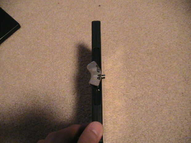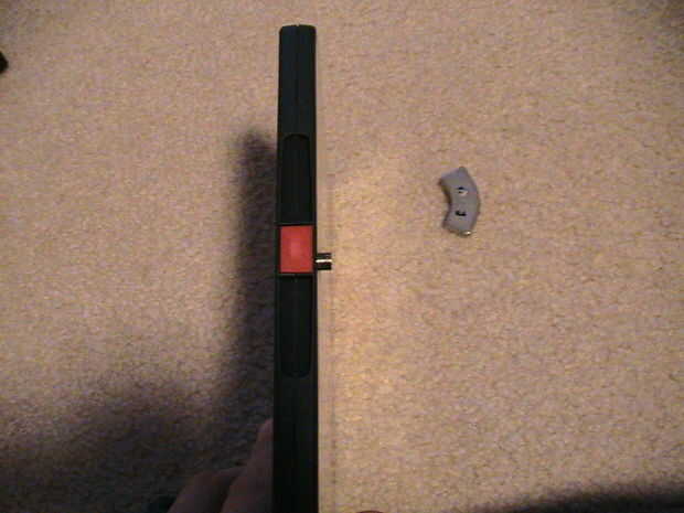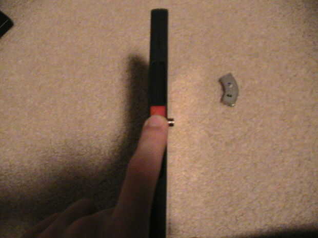 El segundo paso es empujar hacia abajo en la cerradura real. Hago esto porque algunas veces el pequeño pedazo de metal consigue alojado en el caso de anteriores personas tratando de sacar la cerradura. Empujando hacia atrás en el caso permite el imán tirar de la barra de metal al ras con la cerradura.