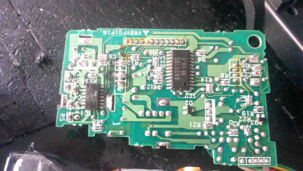 Para encontrar el pin de alimentación, buscar un fusible cercano o un rastro más grueso de los pernos. marca en la parte inferior del tablero o escribirlo en algún lugar para no olvidar porque son necesarios en el siguiente paso.