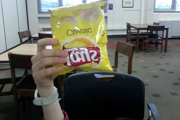 Chips: abrir la bolsa de la parte inferior para que la sal y el sabor poco a poco desciende a la bolsa y el sabor se mantiene en cada chip.