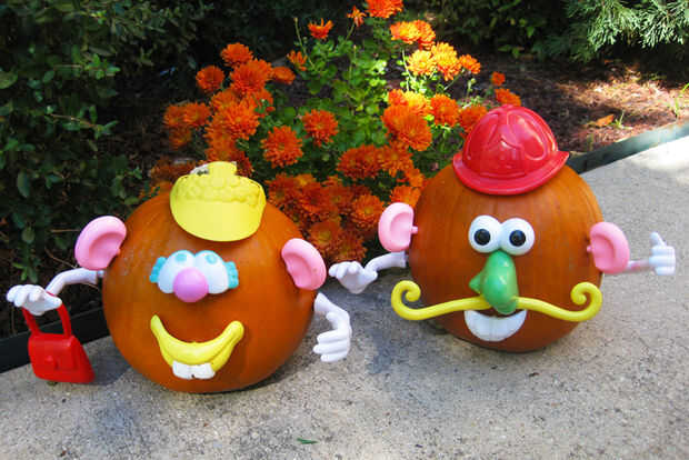 Consejo: Para el kiddos muy pequeñas, puede dejar que les adorna sus calabazas con piezas cabeza de Mr. Potato en vez de talla. 3 Perfore los agujeros en la calabaza para los ojos, la nariz y la boca. Si la calabaza talla va horriblemente mal, se ve como una mancha, y el niño está molesto, podría decirles que utilice las piezas de la cabeza de Mr. Potato en la parte trasera para hacer una cara y salvar el día.