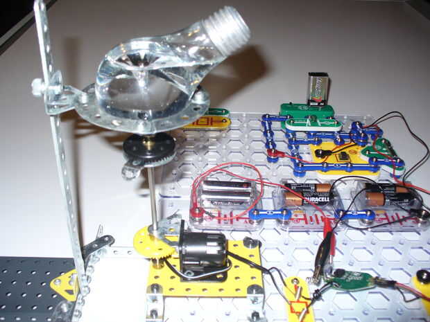 Lamentablemente el motor de CyberK'nex está orientado para par, no de velocidad y por lo tanto se volvió demasiado lentamente para ser un motor eficaz para la centrífuga ni el agitador magnético.