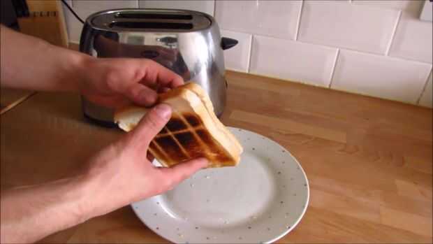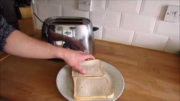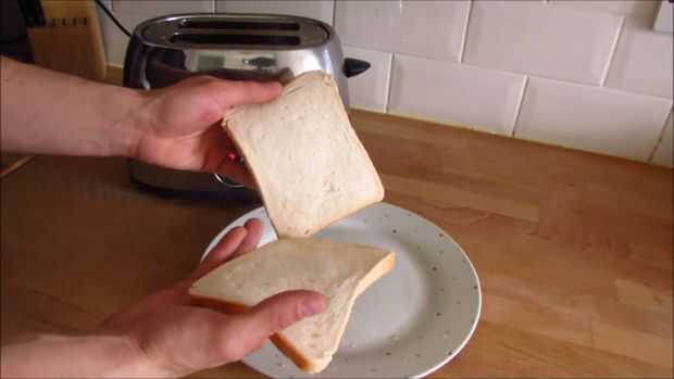 Esta es mi forma de hacer sandwich de pan tostado. Todo lo que tienes que hacer es colocar dos trozos de pan en una ranura del tostador. Cuando esté listo, vas a tener uno tostado lado suave de la raza y otro lado.