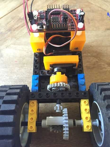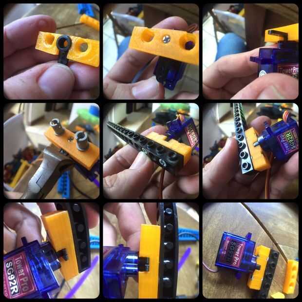 La primera pieza es una barra de 4 unidades se une al servo. La segunda es una unión de servo a engranajes. Estas piezas se unen al servo a través de cualquiera de las brazos vienen con el servo.