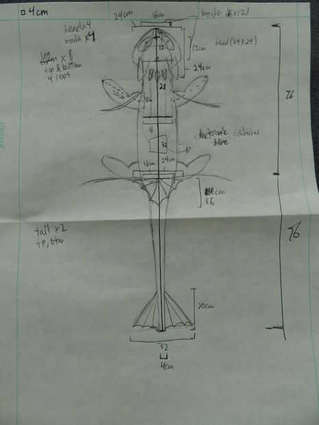 Con estas dimensiones la marioneta del calcetín interior fue hecha y el resto del cuerpo fue escalado alrededor de eso. Tuvo múltiples iteraciones como se ve en la imagen de abajo. La escala es un poco complicada. Es aconsejable que dibujar lo que quieras tu títere parece, mirando con las dimensiones del brazo y dibuje la forma libre de descanso para mirar a derecha y luego a medida que la longitud del componente realmente se basa en la escala del papel gráfico. En la segunda imagen puede verse que las plazas en el papel cuadriculado representaban dimensiones de marioneta de 4x4cm.