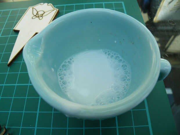 Usted podría utilizar barniz, o la tarjeta en superglue, pero tratada la madera con aceite de holandés y pintado de la tarjeta con pegamento PVA (pegamento blanco artesanal, o cola para madera, son lo mismo).