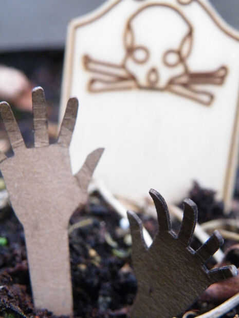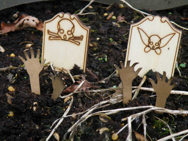 Si tienes unos minutos, raspar el suelo hacia arriba en un montículo Carlitos delante de la tumba, con tal vez un cráter donde las manos han estalló...