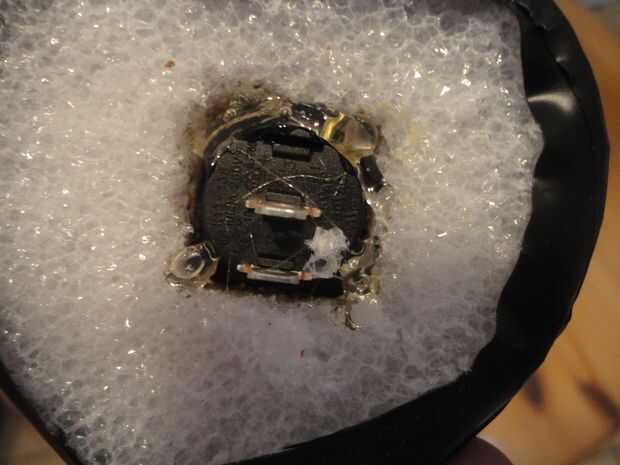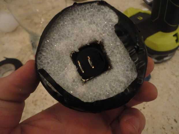 Ahora, si no tamaño adecuado, no te preocupes, cometí este error una vez también. Mi era demasiado pequeño para el agujero y no sentarse bien en la parte superior. Lo que hice fue tomó algunos pedazos pequeños de papel (doblado) y oró en el agujero entre el interruptor y el corcho/espuma. Esto llevó a cabo el interruptor en la posición correcta.