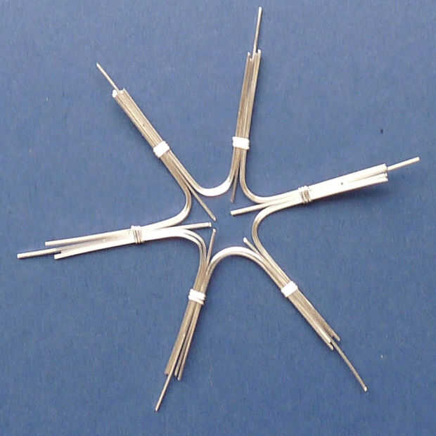 5) cuando se unen todos los paquetes, suavemente tire el (punto) centro pedazos hacia fuera sobre ½" y forma el marco de la estrella.
