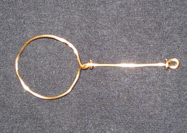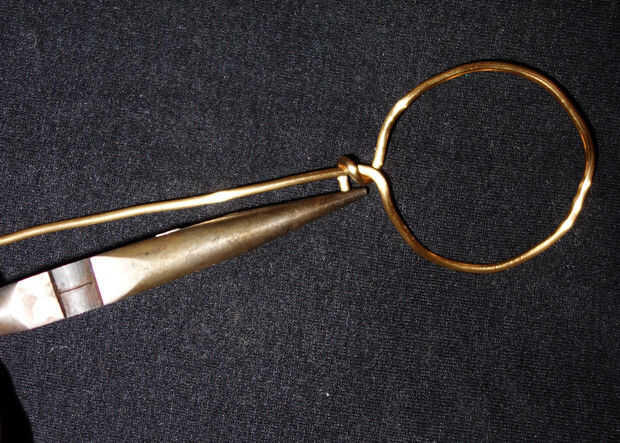 - Con un par de pinzas, suavemente doblar un extremo en un pequeño círculo y gire el exceso alrededor de la manija.