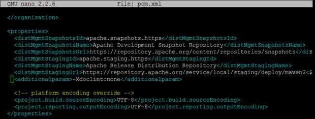 Abra el archivo pom.xml en hadoop-2.6.0-fuente y encontrar la parte que empieza con propiedades de < > en línea 81. Esta sección define las propiedades globales para el proceso de construcción. Entre las etiquetas < propiedades >< / propiedades >, agregue la línea siguiente junto con las otras líneas: