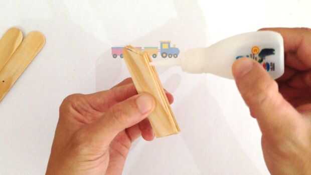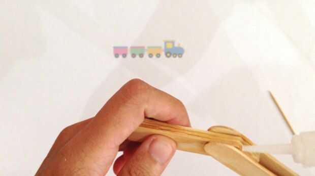 Palo 3 después pega en el paso 1 para hacer el mango de su pistola de juguete casera usando Kodak Eastman 910, Super pegamento 502... una especie de pegamento líquido transparente.