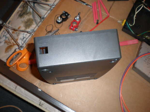 Añadir un alivio de tensión para que no se puede tirar en las uniones que hiciste, o en el tablero de PC en la unidad. Yo simplemente ata un nudo en cada uno de los cables.