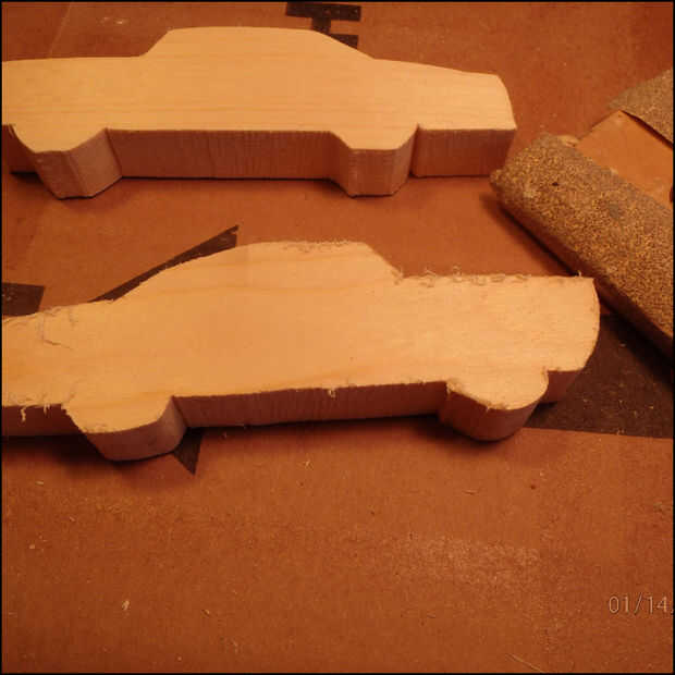 Este paso sólo muestra cómo la sierra dejó algunos fragmentos de madera alrededor del perímetro de la forma, pero esto se elimina fácilmente con un bloque de lijado. No quieres material interfiriendo en el proceso de pegamento.