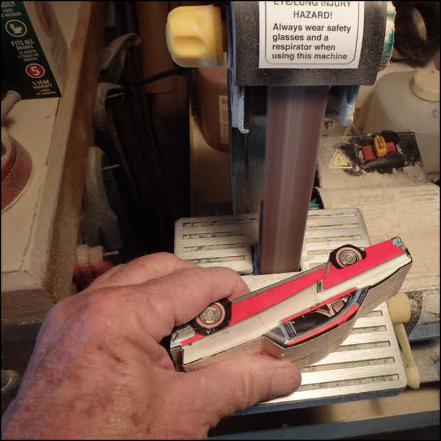 OK, el tiempo para darle forma final. Me encanta la lijadora de banda de 1 pulgada para trabajos como este y realmente hace fácil el trabajo de él. He intentado dejar un poco de exceso en ambas partes para asegurar que ambos lados coincidiría con el final. Manera lee un poco está bien, pero no queremos demasiado. Una Dremel se puede utilizar también, si hay marcas (como en la parte delantera y trasera) para suavizar.