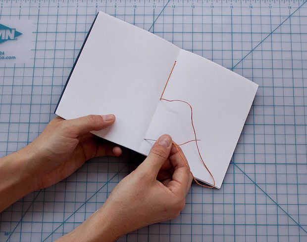 Finalmente, tomar la aguja a través del orificio inferior.