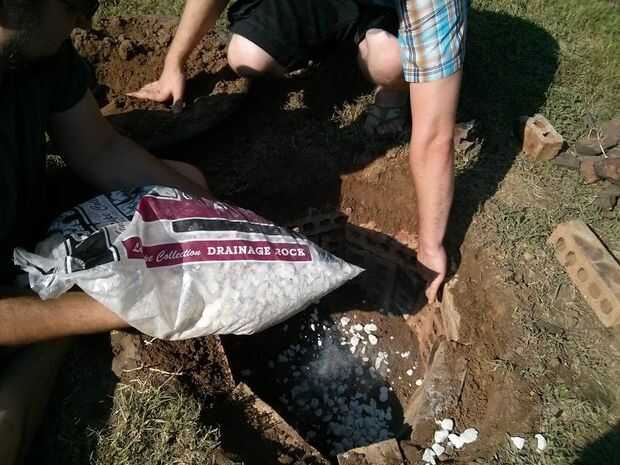 Cubrir el fondo de su pozo en paisajismo drenaje rocas. Esto ayudará a su ceniza y detritus de remojo fuegos abajo en el suelo cuando llueve. Esto también ayudará a mantener todo el asunto se convirtiera en un bruto hoyo de lodo.