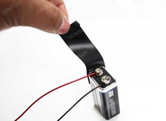Reúne tus materiales. Asegúrese de utilizar sólo esta batería de 9V, nunca use ninguna batería supera los 12V que potencialmente puede dañar el LED. Utilizando una batería menos de 9V no permiten incluso enciendan las luces.