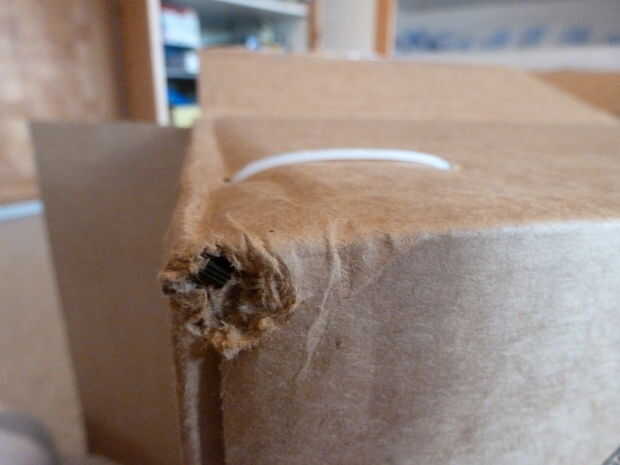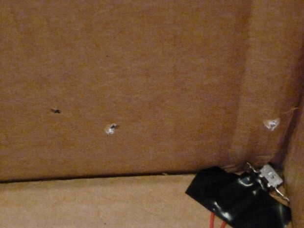 A continuación, poner un agujero en la esquina de la caja (ver foto #2) donde se montará el conjunto a y