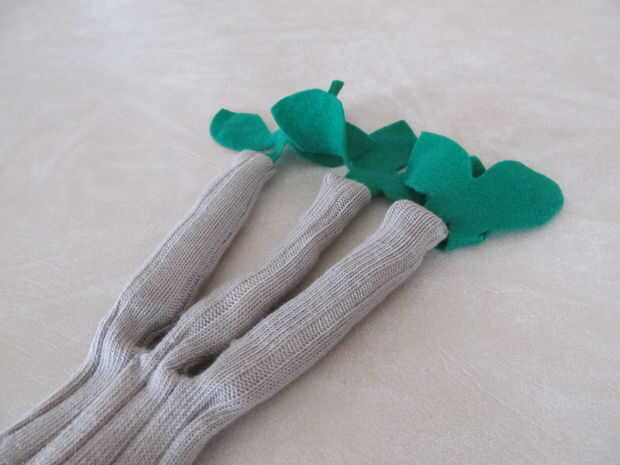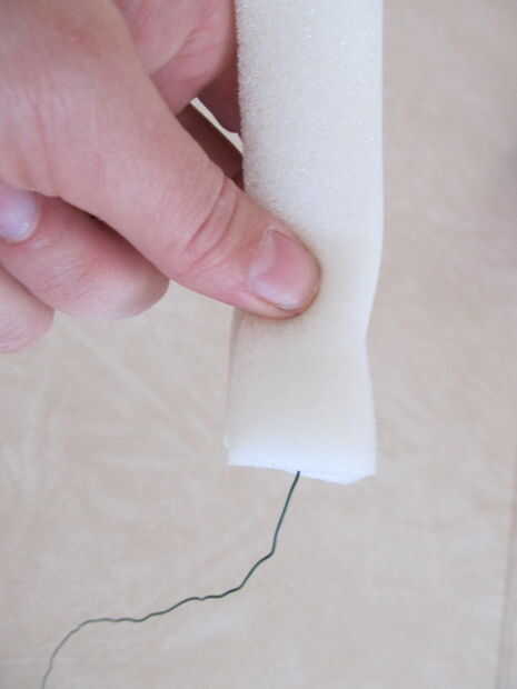 Comenzar por las ramas de relleno. Tomar las 3 piezas de espuma y trabajar algunos alambre floral a través del centro de la espuma y la parte superior de la misma. Corte el alambre dejando aproximadamente 1/2" exceso en la parte inferior y superior. Doble hacia abajo el alambre sobrante para que se dobla en la espuma. Repita este proceso con todas las 3 piezas. Ahora ejecute sus pedazos de espuma por cada rama. (como usted sería un dedo en un guante)