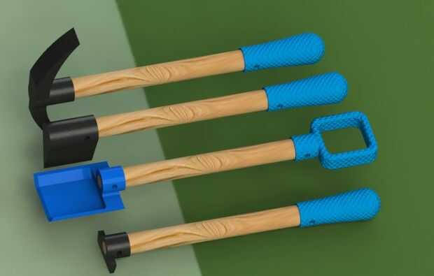 Para el concurso de impresión 3D, diseñé una imprimible Mulit-herramienta 3D. La herramienta es de unos dos pies de largo. Las configuraciones son hacha, pala, pico y azadón. Sólo necesita imprimir un eje, de cada cabeza, un mango de pala y una manija normal. Espero que disfruten mis herramientas. Tengo los archivos de impresión 3D a continuación.