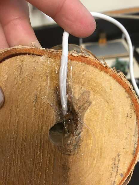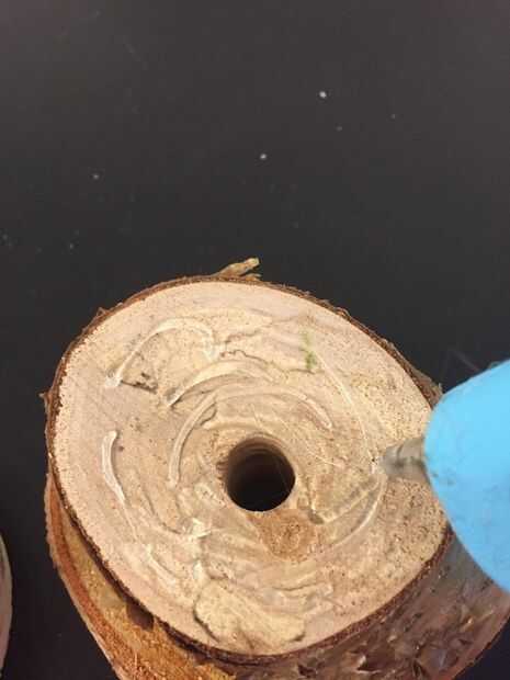 Después de la espera que me seco caliente pegado el split pedazo de madera a la parte superior de todo el producto y dejando el agujero descubierto.