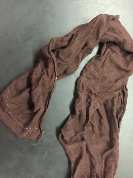 OPCIONAL: decidido a proteger las superficies de la parte inferior de este muelle con un viejo pañuelo marrón. Colocar el muelle en él y contorneado la bufanda con un rotulador metálico para asegurarse de que podía ver las marcas. Luego corté tal que encaje en la parte inferior del producto para proteger las superficies que se coloca en. Utilizar pegamento caliente para fijar la bufanda a la parte inferior.