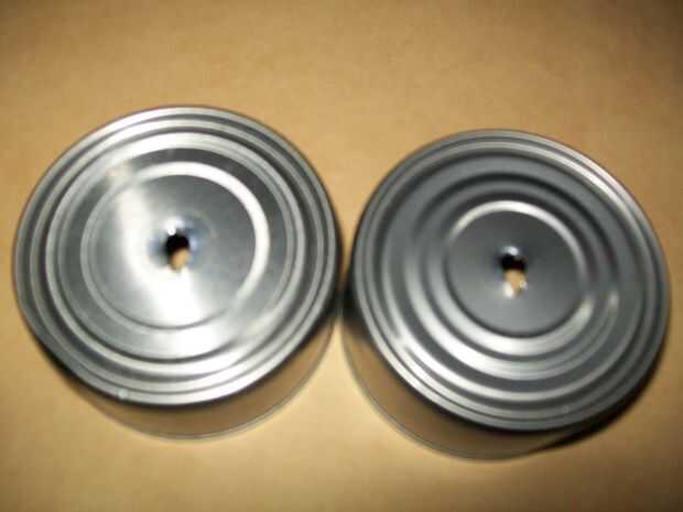 Para que las latas de atún caber dentro de la manivela y realmente conseguir puestos, necesitamos hacer algún derecho de agujeros de 3/8" en el centro de ellos y con un pequeño archivo triangular o un archivo de 1/8", hacer un agujero centrado en off como las que ves en las fotos. Entenderás lo que quiero decir cuando ves a la manivela. (Lo siento si las fotos no son muy claras, pero usted puede hacer los agujeros).