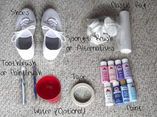 esto es cómo llegó a espero les guste.Paso 1: materiales -Negro zapatos (blanco $12)-Pintura acrílica Anita; Blanco, azul, púrpura (pasillo de la manía de 94 centavos de dólar)-Bolsos tienda de alimentación (opcional)-Pequeño pincel-Cepillo de diente