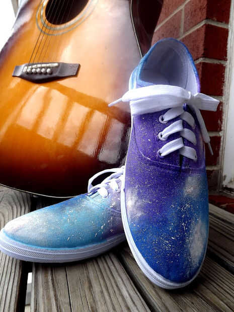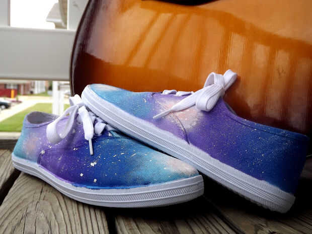 aquí es un proyecto DIY impresionante y relativamente barato para hacer sus zapatos zapatos galaxia!Para comenzar, aquí están los materiales que usted necesitará:Zapatos de lona negro barato ($10 en Walmart)Pintar de colores diferentes y divertidos,