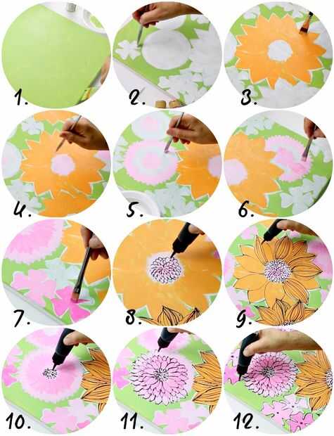 2. utilizando la plantilla abajo, lápiz en las flores y llenar las formas con blanco