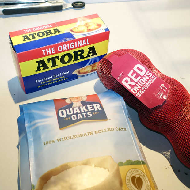 - 2 cebollas (algunas personas podrían argumentar con la autenticidad de tener verduras dentro un haggis, pero ningún escocés verdadero le teme a una cebolla wee)