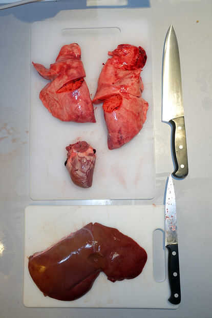 Mmmm, desplumar. Este es uno de los más bonitos cortes de despojos que es probable que venir a través. Tome un momento para admirar su belleza. Si los pulmones están intactos, intentar inflarlos usando una pajita para soplar en los bronquios. Le prometo que merece la pena. Al inflar y desinflar los pulmones, realmente tendrás un aprecio por la naturaleza fractal elegante de estas delicadas estructuras.