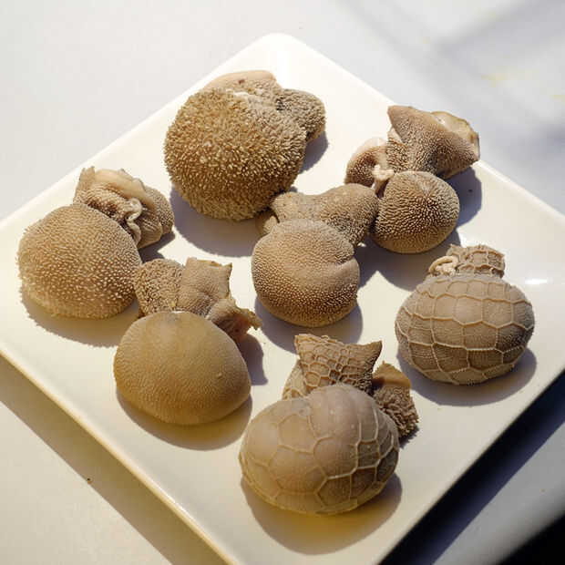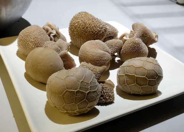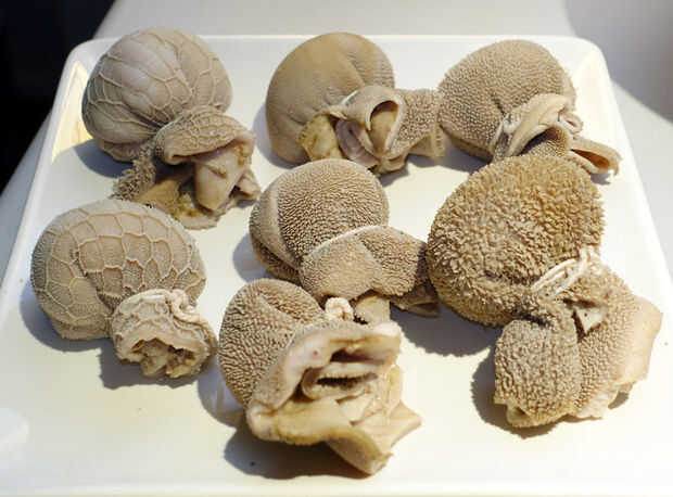 En este punto, si estás haciendo haggis COP, debe ha creado un pequeño montón de diminutas haggises crudos. Usted probablemente será capaz de a forma nueve o diez haggis COP del revestimiento del estómago de una oveja sola. Mira cómo la textura varía desde pop a pop - que el cambio en la estructura refleja la diferencia en función entre los varios compartimientos del estómago de rumiantes. Limpio, ¿no?
