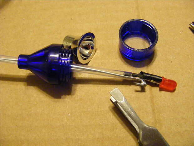 El ensamblaje de la luz viene aparte como una linterna y vi que el LED blanco era fácil de reemplazar con una roja.