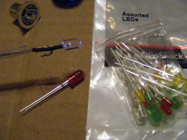 Tenía este surtido de LEDs de un proyecto anterior y elegido un recambio LED rojo basado en tamaño similar ya que no se marcaron de alguna manera con su tensión nominal.