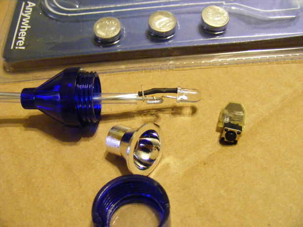 Este LED 5060Fuente de luz tenía un LED blanco. Podría haber estafado y acaba de poner un pedazo de acetato rojo para un filtro de luz en el lente para hacer una luz roja. ¿Ahora que pasaría una oportunidad para hacer algunas soldaduras?