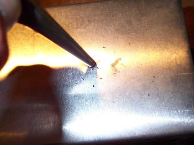Para hacer el agujero para el lente o el ojo de HAL 9000s, medir el centro, marcar y golpee otra vez con un golpe para el pedacito de taladro no camina.