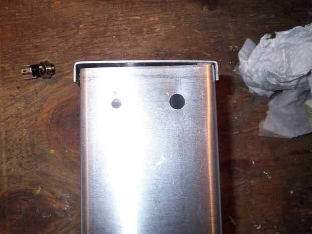 En la espalda, haga dos agujeros, uno para su alimentación y uno para el interruptor de encendido.