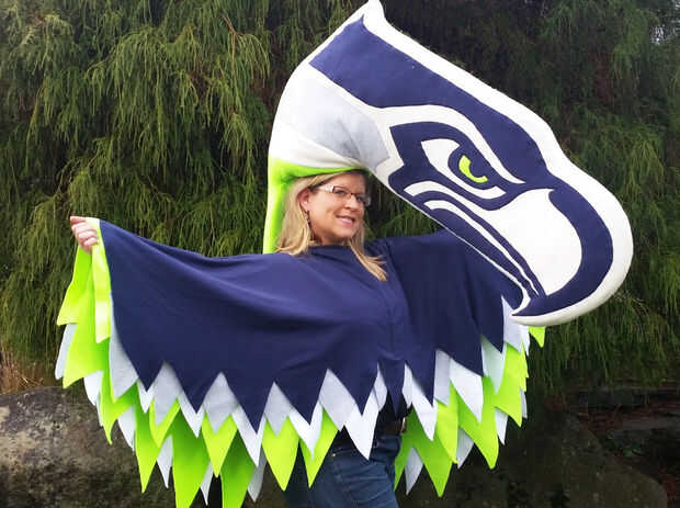 Este instructable no se limita a los fanáticos de Seahawk. Puede ser modificado para representar diferentes tipos de alas y usar trajes o por otros fans cuyos equipos tienen aves para mascotas. El resultado final es un llamativo poncho que mostrar tu espíritu, mantener el calor y protegerse de los elementos.