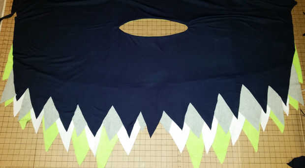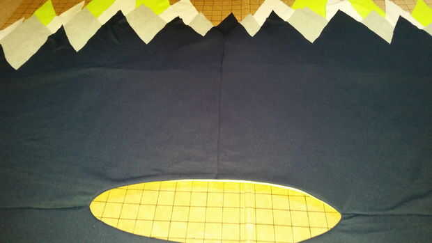 Para asegurar que la capa superior se mantiene en su lugar, coser una puntada recta por el medio del frente, la mitad de la espalda, a lo largo de la línea de doblez superior (donde estarán tus brazos) y a lo largo del borde exterior (que serán las muñecas).