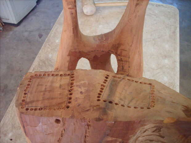 Posiciones de agujero de taladro se ha establecido para la colocación de los halcones de bebé.