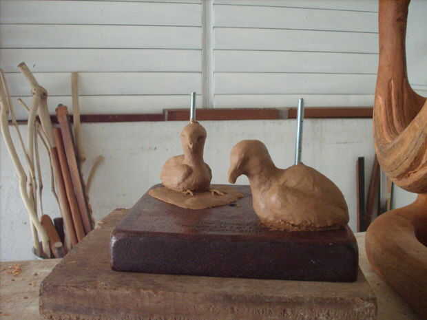 Los halcones de bebé están modelados en arcilla de tamaño y colocación.