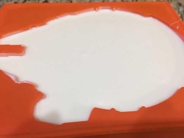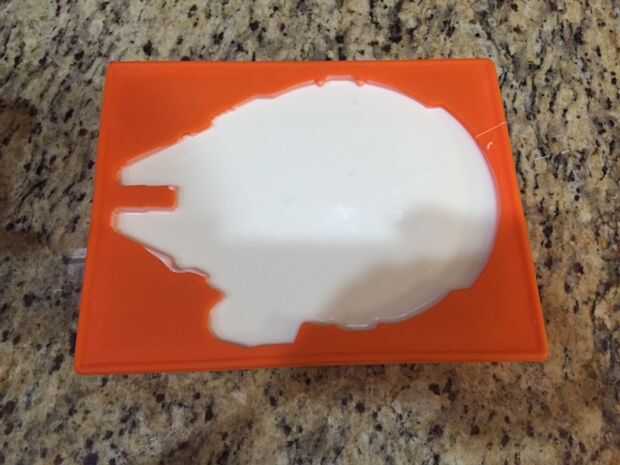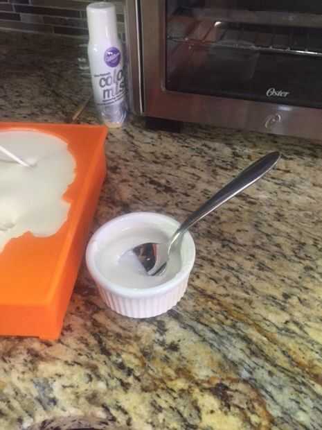 Después se recogen las herramientas, agregar tus 3 bolsas de caramelo se derrite (tuve 4 oz a llenar algunos agujeros pero no tienes que) a su caja fuerte de la microonda del tazón de fuente y siga las instrucciones en el paquete. Tomará mucho más tiempo que el paquete ya que están haciendo más, pero hacerlo todos a la vez, tómese su tiempo y asegúrese de se haya derretido completamente, hasta el último círculo poco... Si no podrían acabar con la nave en forma cobarde.