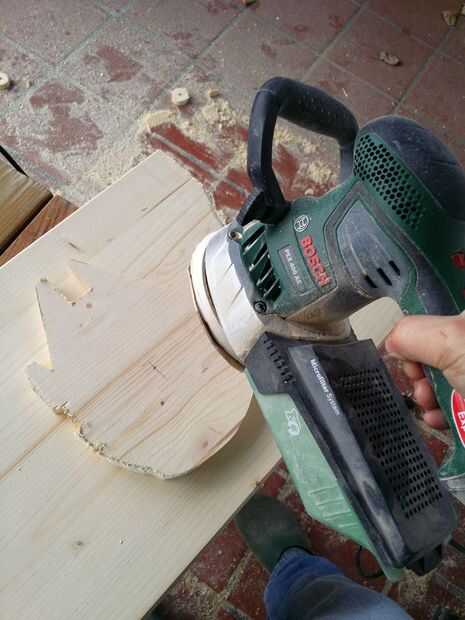 Lijar la pieza con una lijadora orbital y las piezas de los bordes/detallado a mano.