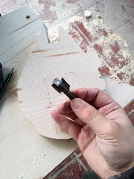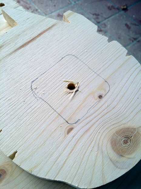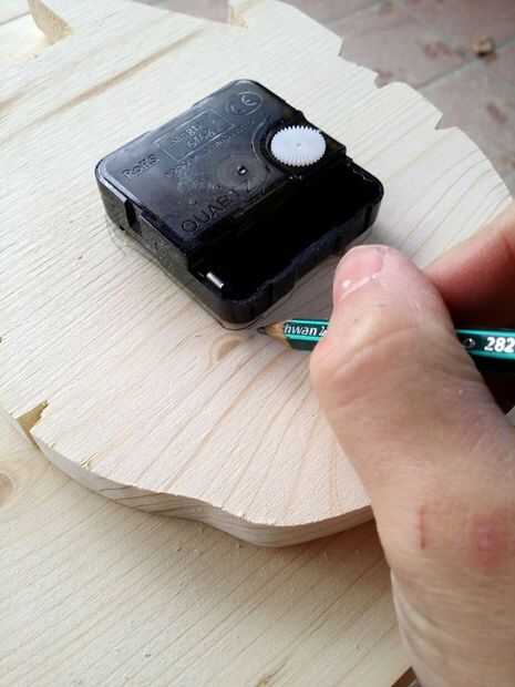 Así que para preparar esto, gire su madera y colocar el mecanismo y marcar los bordes.