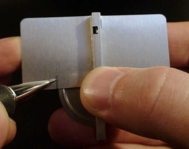 Con un lápiz u otra herramienta de marcado, marque un punto en el panel lateral en el diámetro del disco.