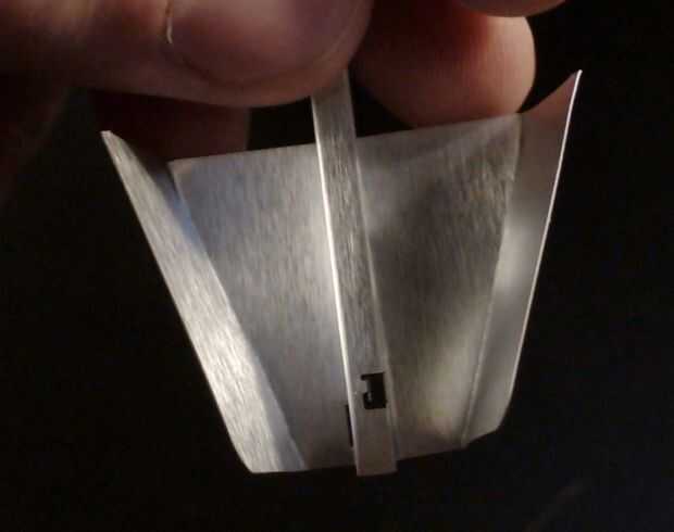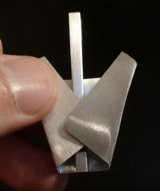 Hacer un 90 grados de la curva en el panel a lo largo de una línea de su marca a un punto un poco alejado del centro. La distancia al centro es a hasta tus sentimientos artísticos (en otras palabras, no saben lo que es). Hacer un doblez simétrico en el otro panel.
